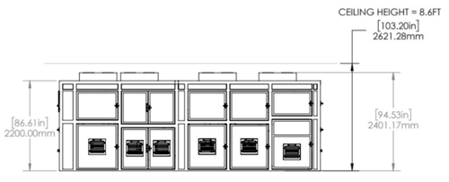 Figure 3. For the End-to-End Molecular Assay System, the dimensions are 10' x 20' x 7.8' (w x l x h). (A) The top-down view of the system; (B) the lateral view of the system.