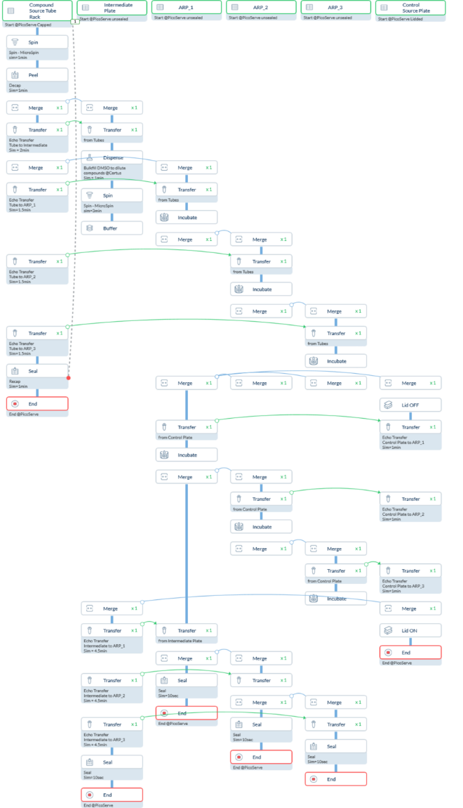 - Compounds transfer from source tubes to assay-ready plates (ARPs)